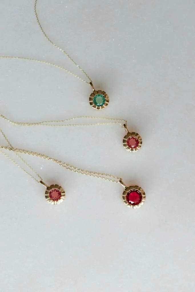 Colar folheado a ouro 18k, com pingente removível, redondo com zircônia pink. Medida aberto: 60cm